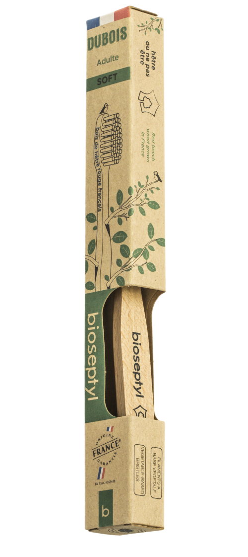 Dubois Adult ir videi draudzīga zobu birste, kas izgatavota no sarkanā dižskābarža koka, kas iegūts ekoloģiski apsaimniekotos Francijas mežos. Sariņi gatavoti uz dārzeņu bāzes.