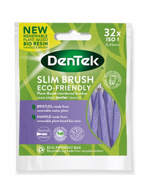 DenTek Slim Brush 0,45 mm starpzobu birstītes ir paredzētas šauru vietu un neērtu leņķu tīrīšanai starp zobiem un smaganām. Birstītes ir taisnas un šauras, lai nodrošinātu piekļuvi pat visgrūtāk sasniedzamajām mutes dobuma vietām. Sukas birstītes ar slaidu galu sašaurinās, tāpēc tās var iekļūt ļoti mazās spraugās un tās var izmantot zobu starpzobu tīrīšanai. Tās ir noderīgas arī breketu tīrīšanai.