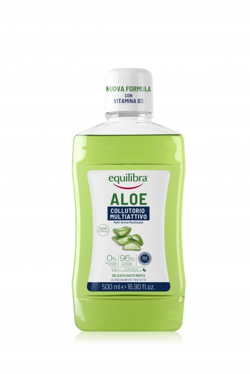 Itāļu zīmola Equilibra alvejas mutes skalojamais līdzeklis piedāvā plašu darbības spektru. Tas lieliski papildina ikdienas higiēnas procedūras un noņem aplikumu, kad nav iespējams tīrīt zobus. Līdzsvarotā formula satur alvejas veru, malvu un Īslandes sūnu ekstraktus, kas nodrošina nomierinošu efektu. Tikmēr tējas koka eļļa ar spēcīgām antiseptiskām īpašībām samazina smaganu asiņošanu un ierobežo baktēriju vairošanos, kas izraisa kariesa un aplikuma parādīšanos.