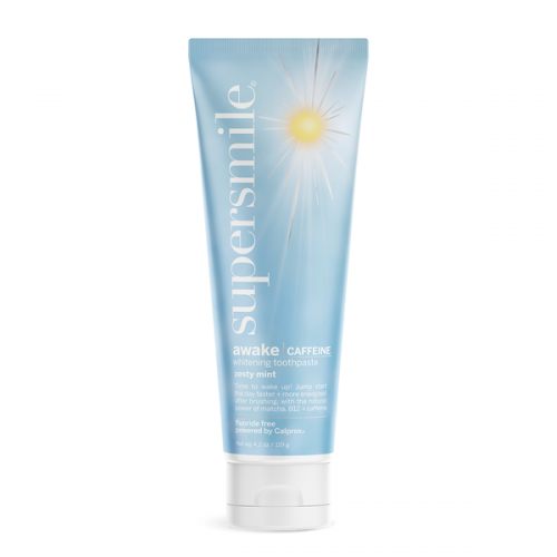 Supersmile zobu: pasta ir patentēta Nr.1 balinoša zobu pasta.Šo profesionālo zobu pastu rekomendē vadošie kosmētiskie stomatologi. Satur Calprox - saudzējoši balina zobus, Baking soda - atsvaidzinaelpu un saglabā veselīgas smaganas.Atmodieties no rītiem ar enerģiju tīrot zobus. Awake balinošā zobu pasta ar Calprox® balina zobus līdz sešiem toņiem. Kofeīns, Matcha, zaļā tēja, B12 vitamīns un rūgtais apelsīns rada patīkamu garšu.
