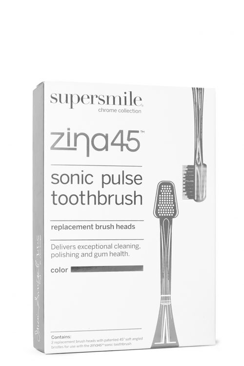 Divas galvas ir labākas par vienu! Ietver divas rezerves birstes galviņas ar mūsu patentēto 45° birstes galvu, kas darbojas tikai ar Zina45 tīrīšanas režīmiem, lai palīdzētu jums efektīvi tīrīt virs un zem smaganu līnijas, saglabājot mutes (un vispārējo!) veselību. Paredzēts darbam ar mūsu Zina45™ Sonic Pulse zobu birsti, kas nodrošina profesionāla līmeņa tīrīšanu un pulēšanu mājās.